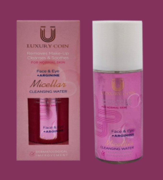 محلول پاککننده آرایش صورت **لاکچری کوین مدل ARGININE1** یک میسلار واتر مناسب پوستهای نرمال است که با عصارهها و مواد پاککننده ملایم، بدون ایجاد خشکی یا چربی اضافه، آرایش و آلودگیهای روزانه را از سطح پوست برمیدارد.