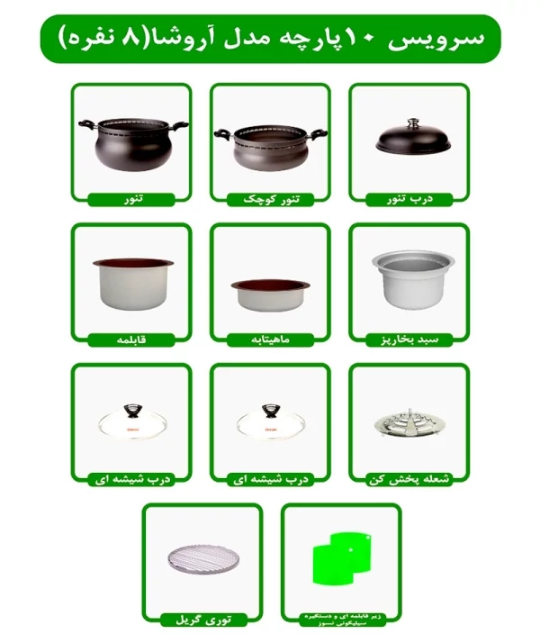 سرویس غذاپز همه کاره مدل 10پارچه 8 نفره- آروشا