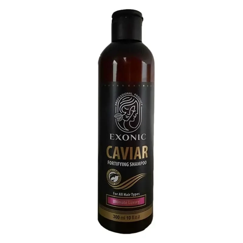 عصاره خاویار که مروارید سیاه نیز نامیده می شود منبع سرشاری از انواع مواد معدنی، اسیدهای آمینه و آنتی اکسیدان بوده و همچنین حاوی ویتامین های A,E,D,C و ویتامین های گروه B و نیز اسیدهای چرب امگا ۳ می باشد که استفاده از آن در محصولات بهداشتی و آرایشی باعث ترمیم، نرمی، درخشندگی و جوانسازی پوست و مو می گردد. شامپو حاوی عصاره خاویار Exonic حاوی مواد ضدالکتریسیته ساکن بوده و شانه پذیری موها را افزایش داده و به آن ها حالتی ابریشمی می دهد. استفاده از این شامپو باعث ایجاد یک لایه حفاظتی روی موها می شود که آن ها را در مقابل اشعه مخرب UV نیز محافظت نموده و موجب حفظ رنگ طبیعی مو نیز خواهد گردید.